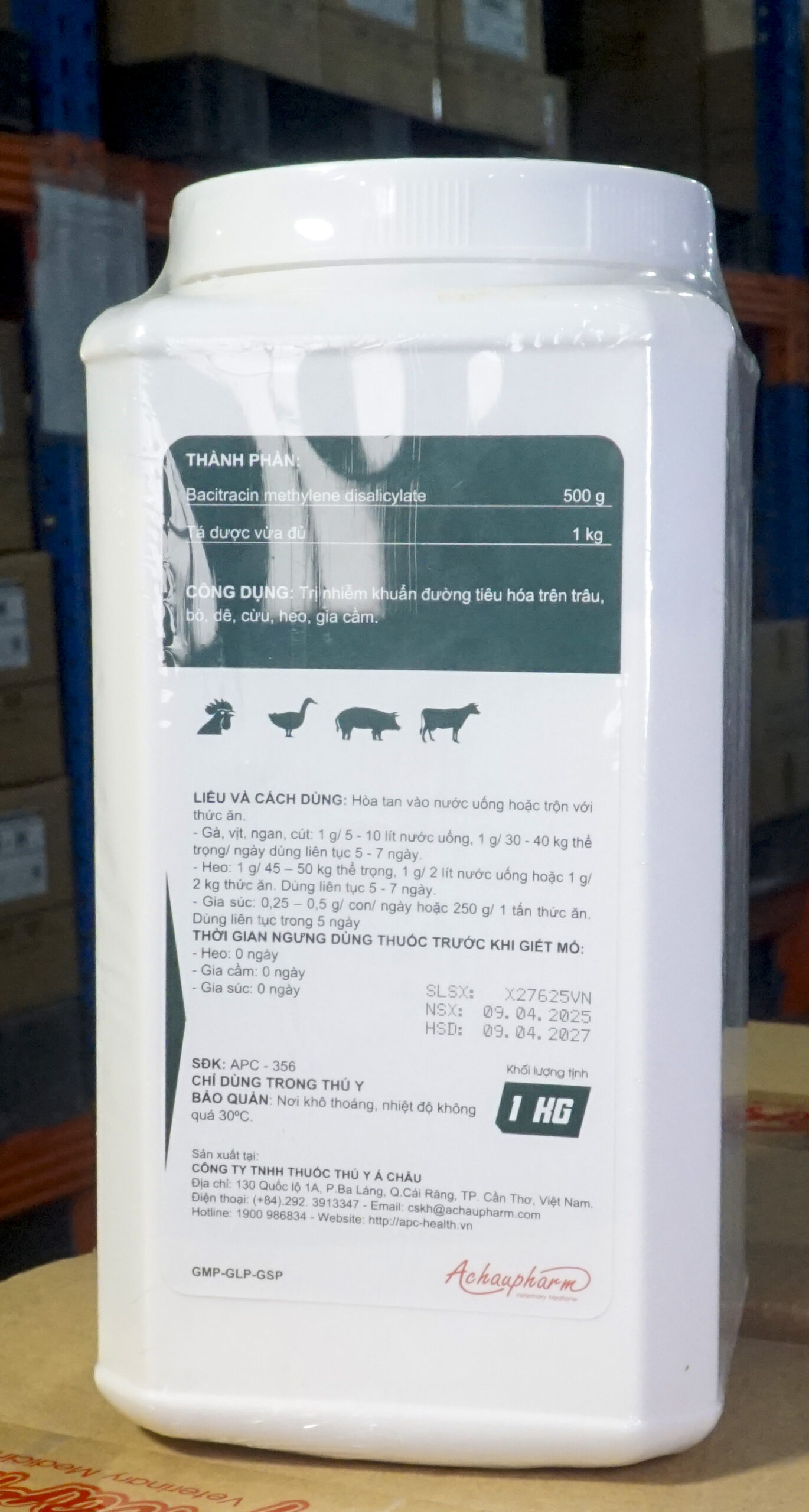 Đặc trị viêm ruột hoại tử trên gia cầm (gà, vịt, ngan, cút) và gia súc (heo, trâu, bò).