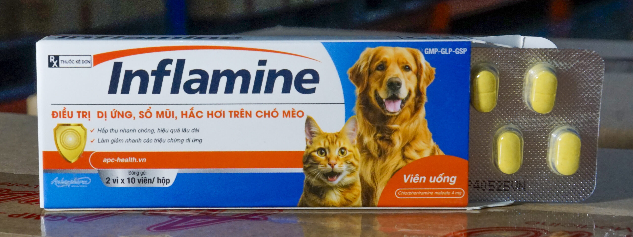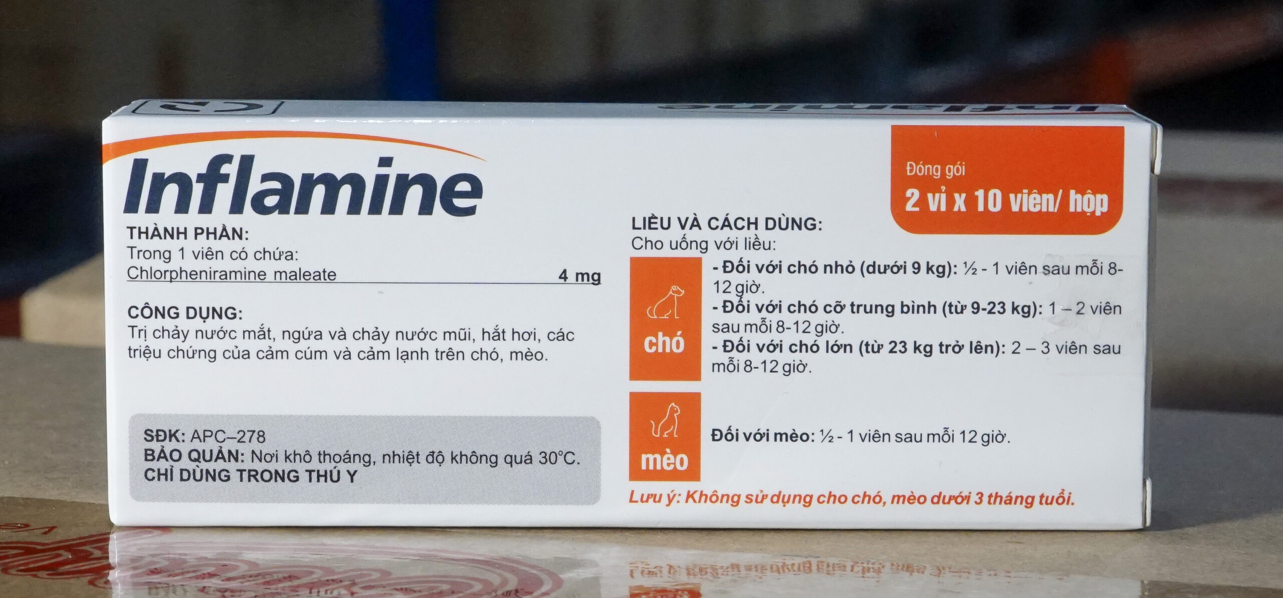 Trị chảy nước mắt, ngứa và chảy nước mũi, hắt hơi, các triệu chứng của cảm cúm và cảm lạnh, say tàu xe, triệu chứng dị ứng trên chó, mèo.