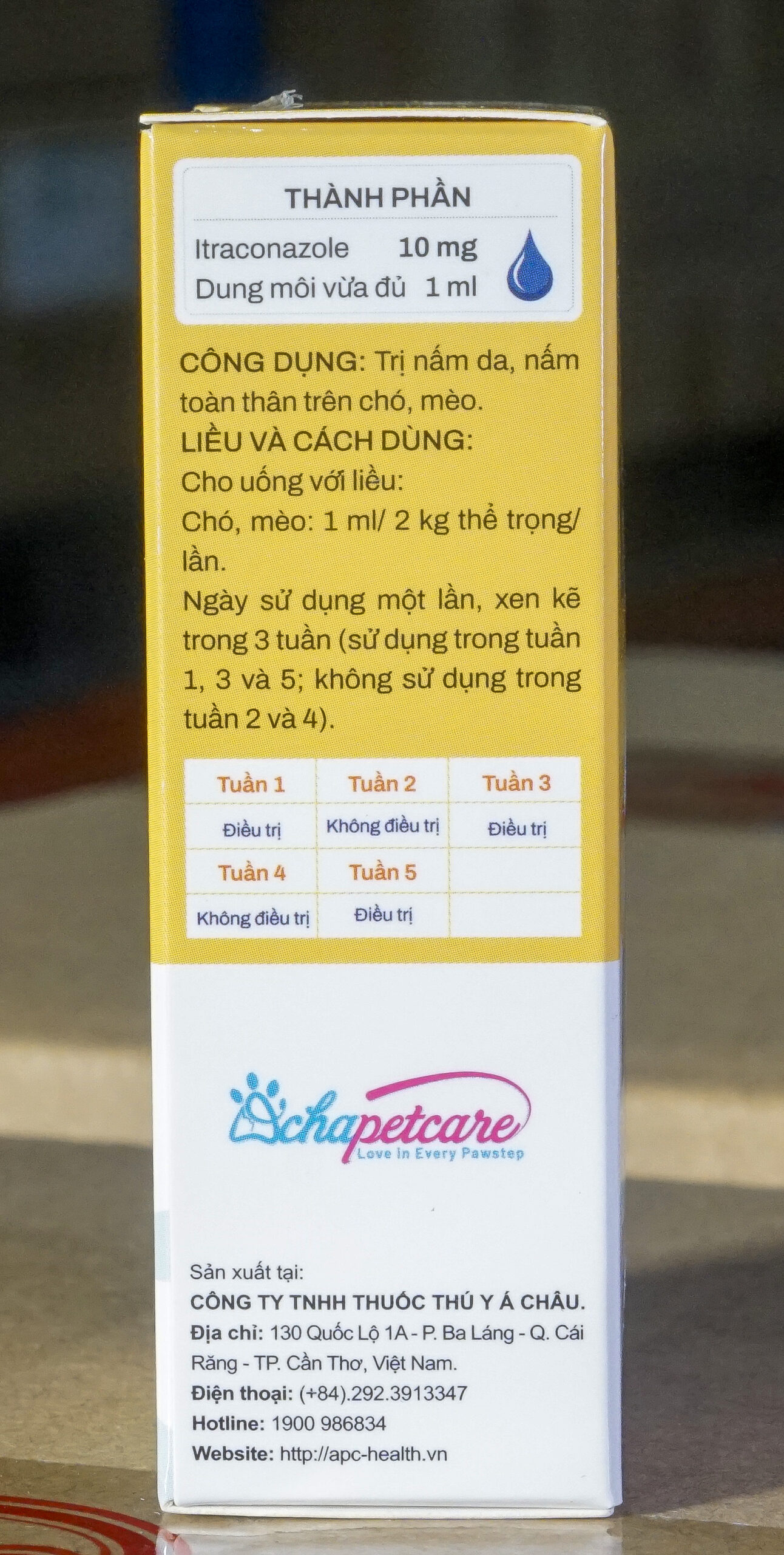 Itraconazole là một loại thuốc kháng nấm phổ rộng được sử dụng ở chó và mèo để ức chế sự phát triển của nấm.