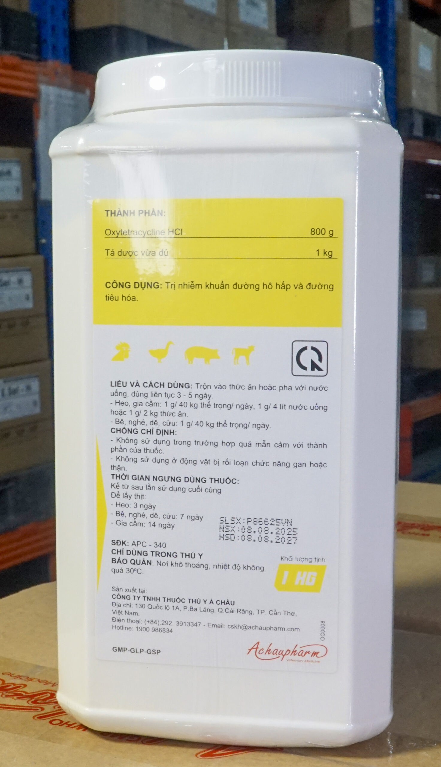 + Trị CRD, CRD ghép E. Coli, viêm mũi truyền nhiễm, tụ huyết trùng, viêm ruột, tiêu chảy phân xanh, phân trắng, thương hàn. Sử dụng liều: 1 g/ 40 – 80